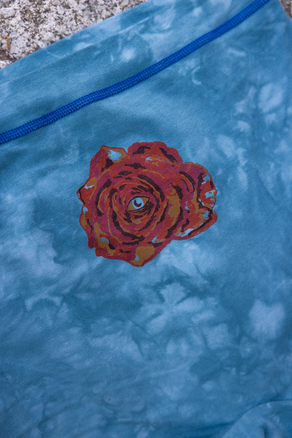 We knit our fabrics in Los Angeles, work with a GOTS-certified dye house, and print exclusively with water-based inks. Every design is created in collaboration with female artists, and all of our production partners are small, family-owned studios located within a 25-mile radius of downtown LA, bringing our vision to life with care and integrity.