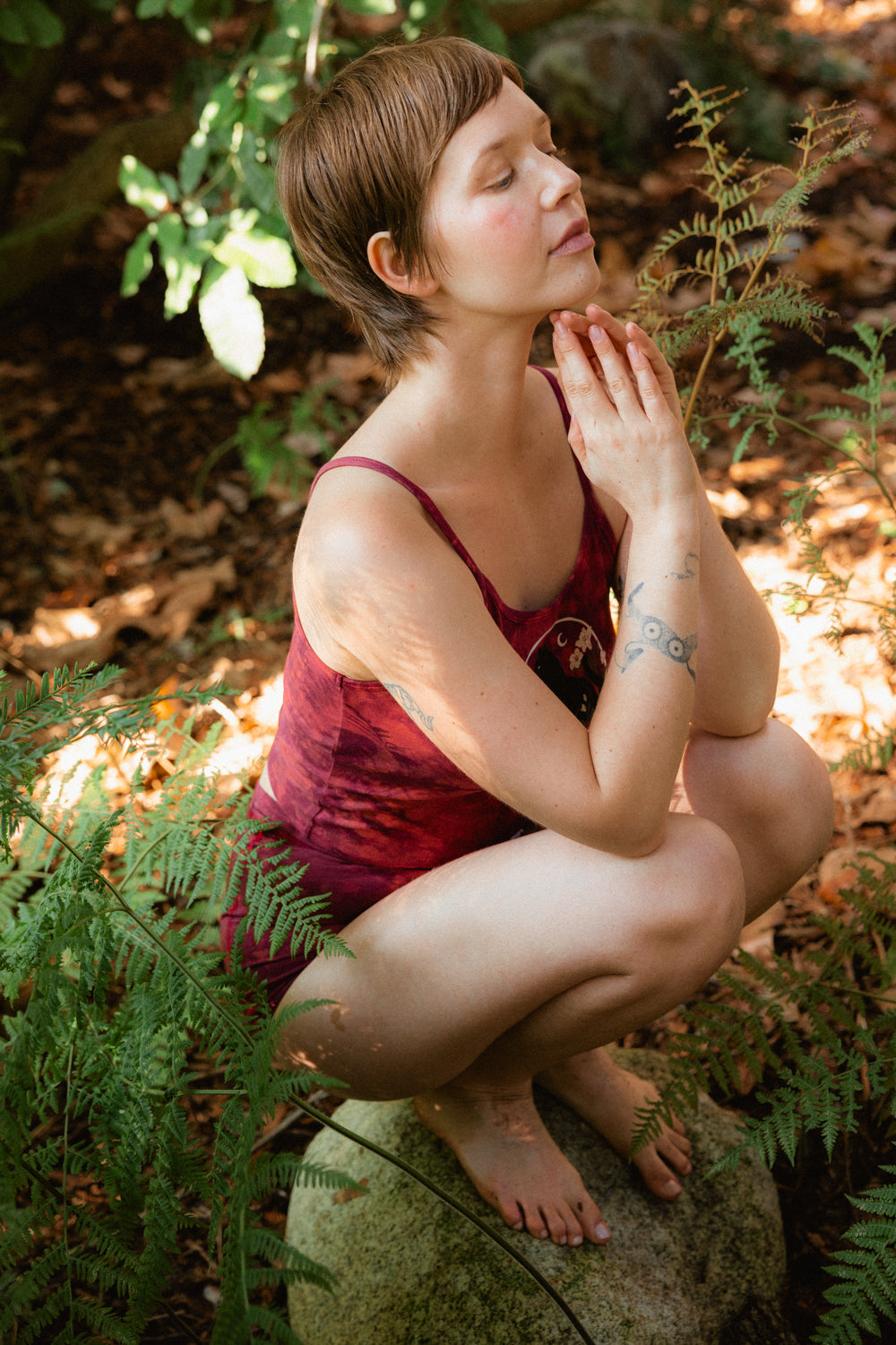 We knit our fabrics in Los Angeles, work with a GOTS-certified dye house, and print exclusively with water-based inks. Every design is created in collaboration with female artists, and all of our production partners are small, family-owned studios located within a 25-mile radius of downtown LA, bringing our vision to life with care and integrity.
