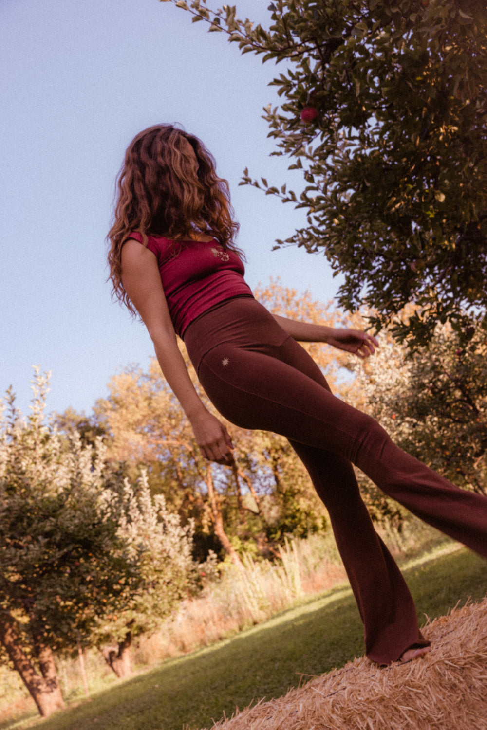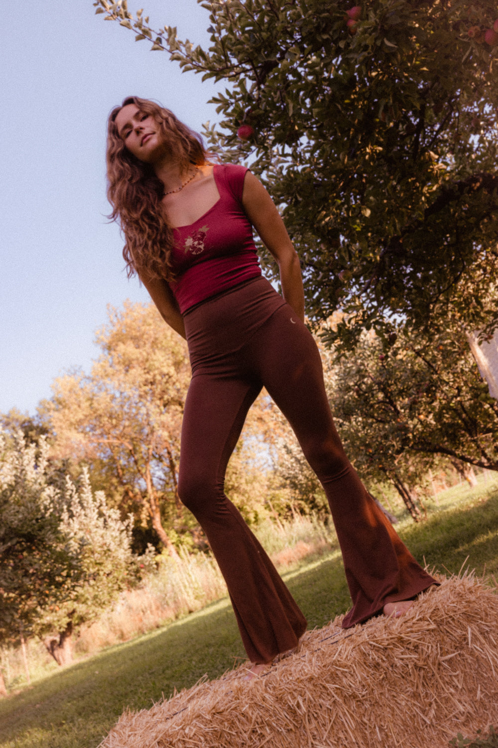 We use plant-based fabrics like TENCEL™ lyocell, ECOVERO™ viscose, and organic cotton, blended with Creora® bio-based spandex for gentle stretch. While the spandex still contains some petroleum, it’s partially derived from renewable sources—making it a better option than traditional synthetics. The result: soft, breathable, lower-impact clothing that feels as good as it is.