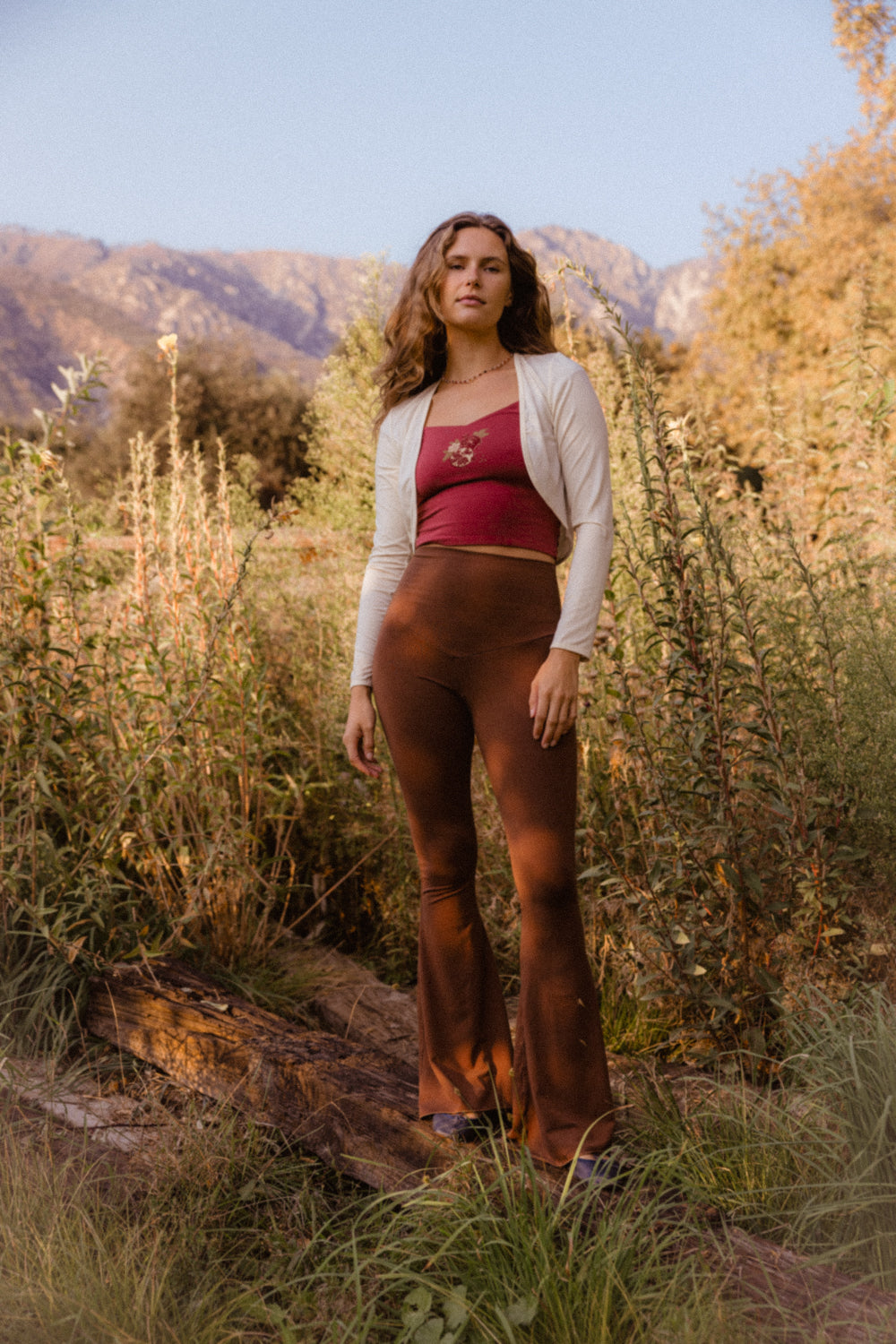 We knit our fabrics in Los Angeles, work with a GOTS-certified dye house, and print exclusively with water-based inks. Every design is created in collaboration with female artists, and all of our production partners are small, family-owned studios located within a 25-mile radius of downtown LA, bringing our vision to life with care and integrity.