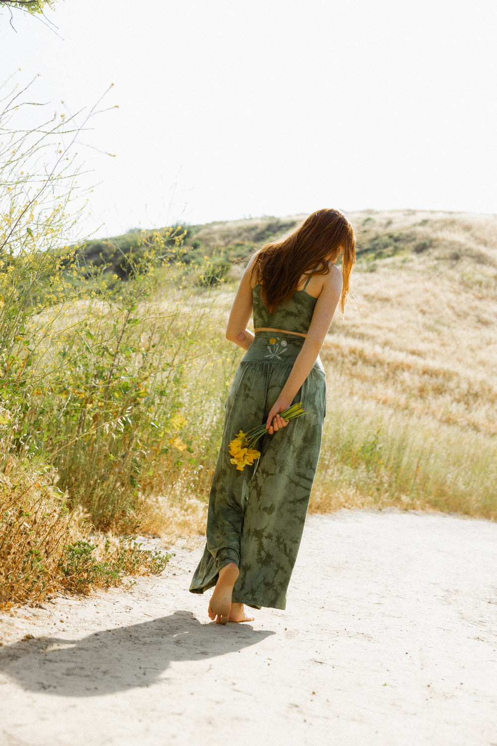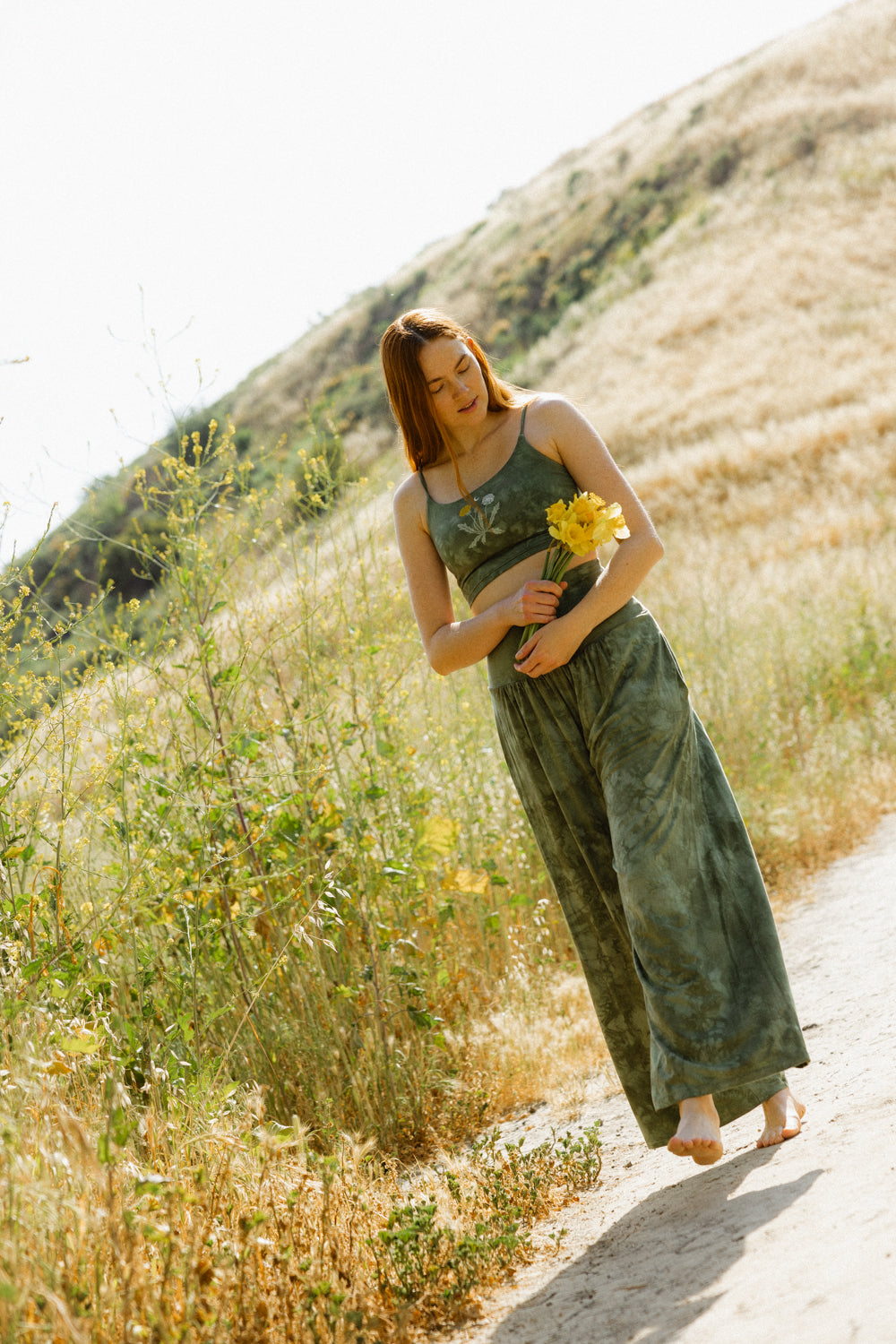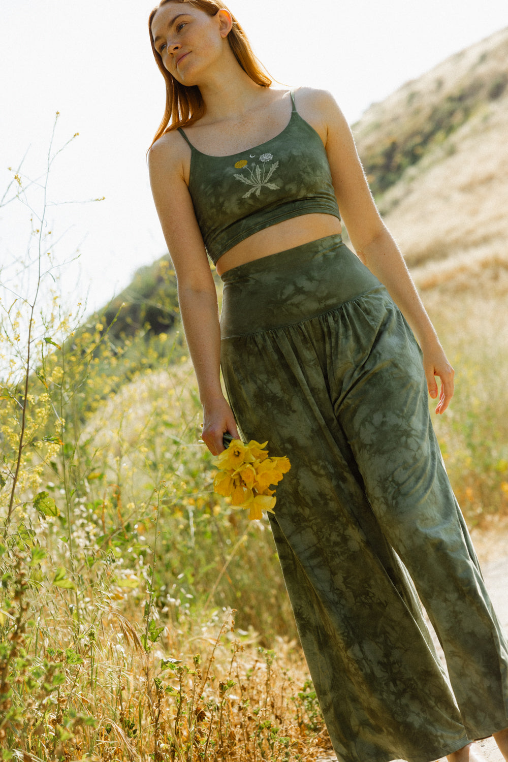 Every piece is made from premium, plant-based or naturally derived fibers selected for softness, breathability, and comfort. Many of our fabrics include TENCEL™ Siro lyocell or other sustainable blends made in small batches. Each garment is knit, cut, sewn, dyed, printed, and finished in Los Angeles, giving it that signature Purusha feel that is buttery, lived in, and completely unique.