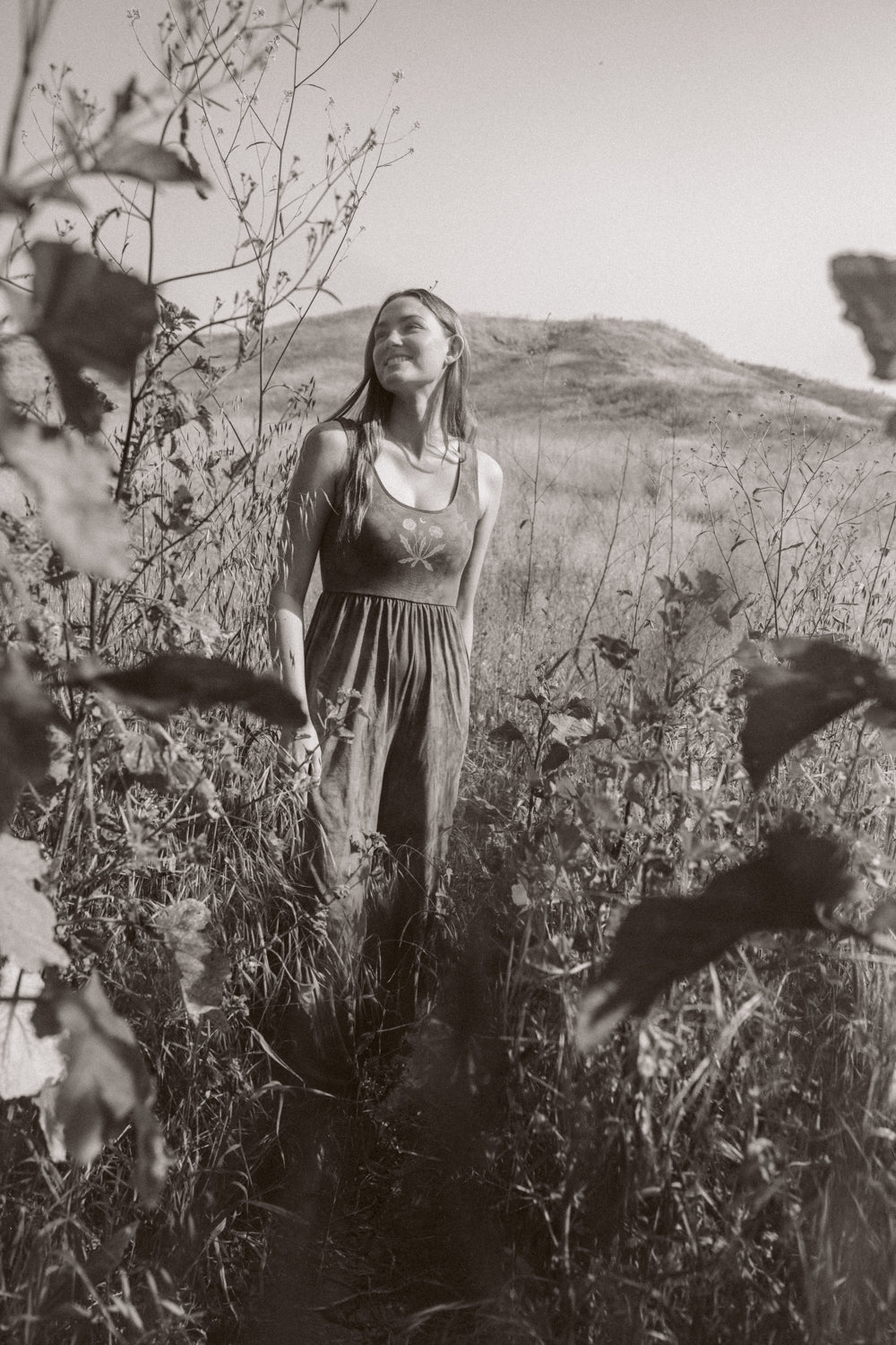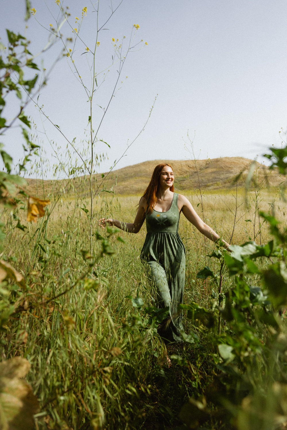 We knit our fabrics in Los Angeles, work with a GOTS-certified dye house, and print exclusively with water-based inks. Every design is created in collaboration with female artists, and all of our production partners are small, family-owned studios located within a 25-mile radius of downtown LA, bringing our vision to life with care and integrity.