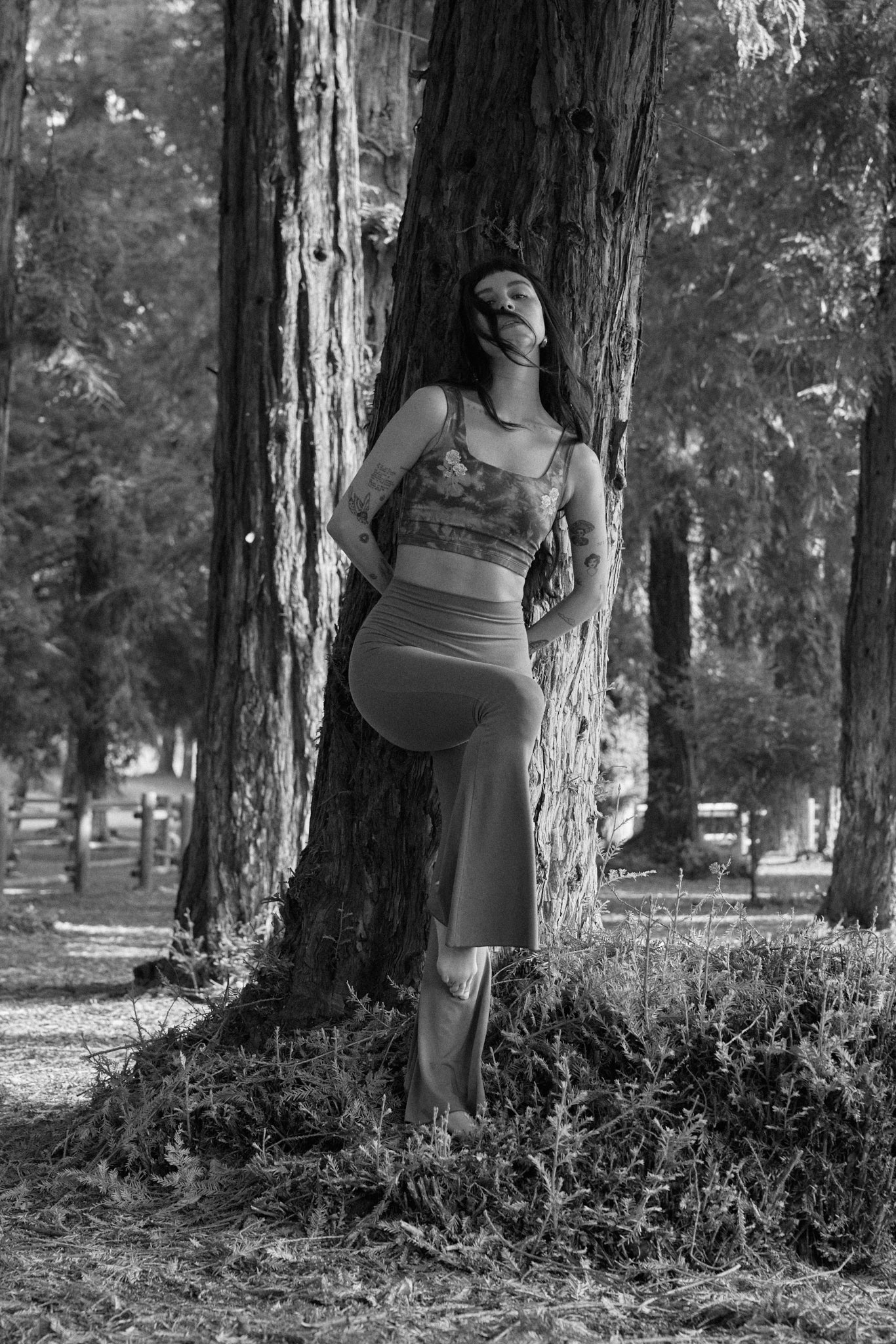 We use plant-based fabrics like TENCEL™ lyocell, ECOVERO™ viscose, and organic cotton, blended with Creora® bio-based spandex for gentle stretch. While the spandex still contains some petroleum, it’s partially derived from renewable sources—making it a better option than traditional synthetics. The result: soft, breathable, lower-impact clothing that feels as good as it is.
