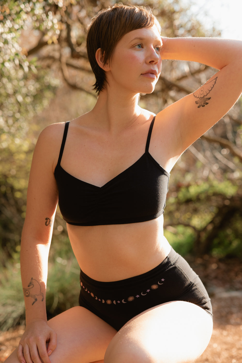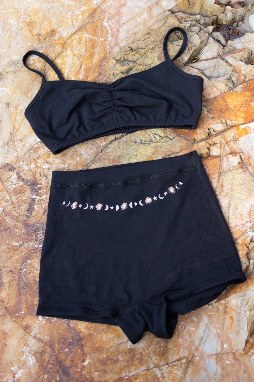 ✿ 92% organic cotton, 8% bio-based spandex (made from corn!), GOTS-certified nontoxic and metal-free dyes, water-based ink, and lots of love!