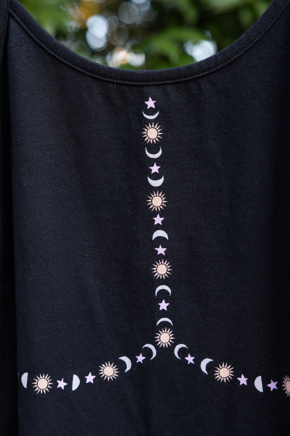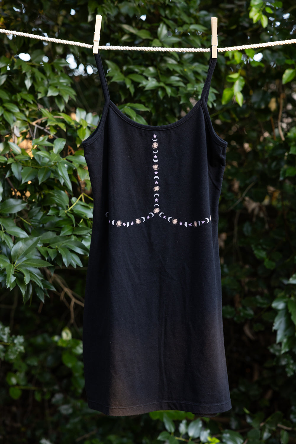 We knit our fabrics in Los Angeles, work with a GOTS-certified dye house, and print exclusively with water-based inks. Every design is created in collaboration with female artists, and all of our production partners are small, family-owned studios located within a 25-mile radius of downtown LA, bringing our vision to life with care and integrity.