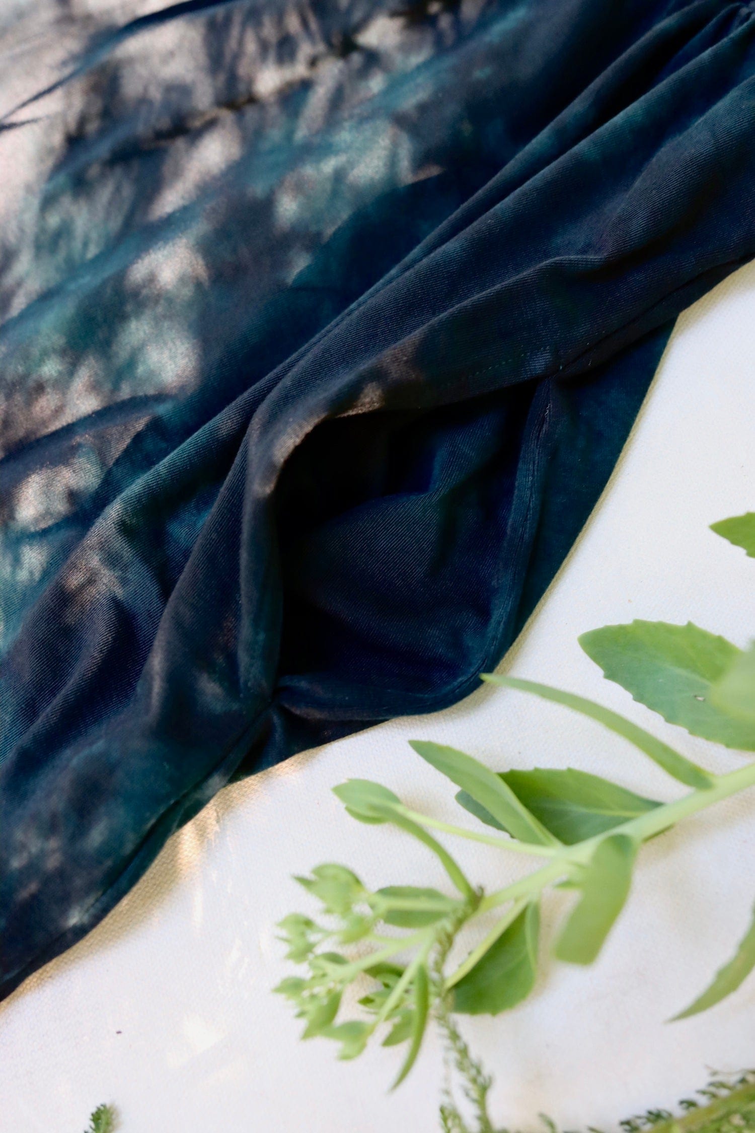 Natural light, dye batches, and screen settings can slightly shift color appearance. We photograph each drop in natural light without heavy editing, but small variations are normal and part of the beauty of small-batch dyeing.