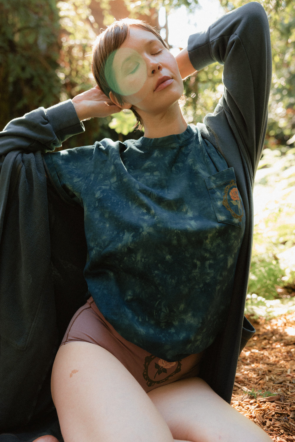We use plant-based fabrics like TENCEL™ lyocell, ECOVERO™ viscose, and organic cotton, blended with Creora® bio-based spandex for gentle stretch. While the spandex still contains some petroleum, it’s partially derived from renewable sources—making it a better option than traditional synthetics. The result: soft, breathable, lower-impact clothing that feels as good as it is.