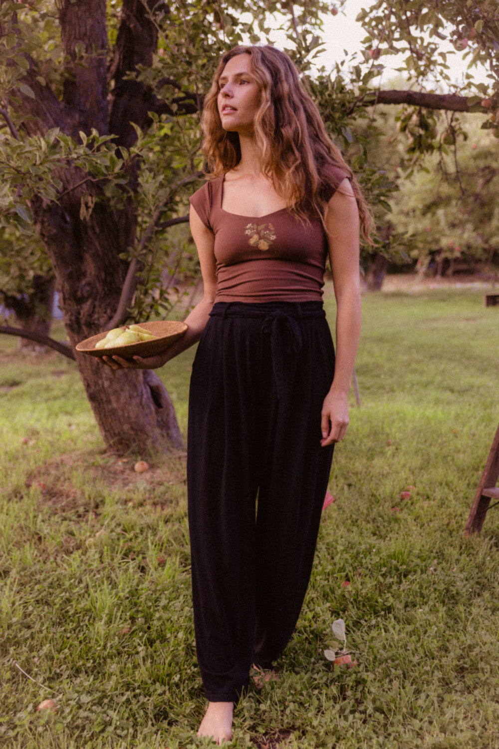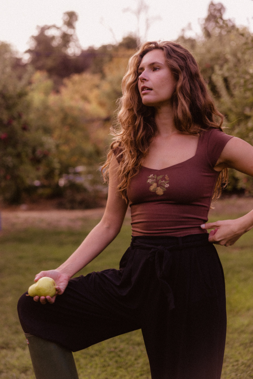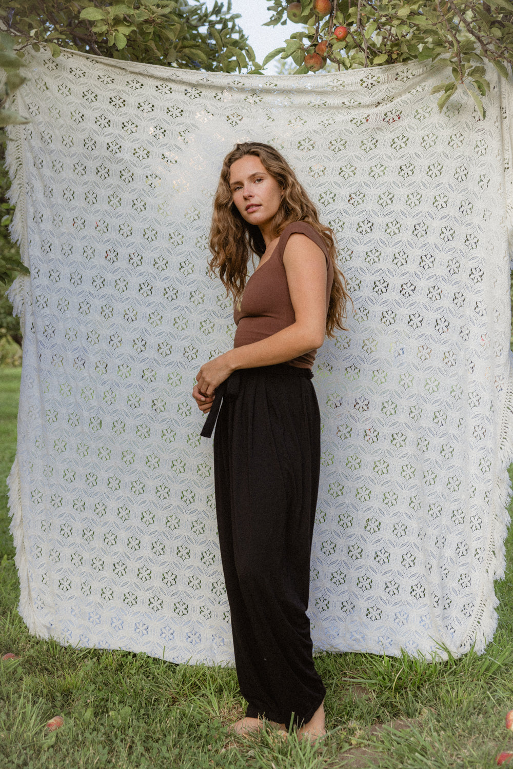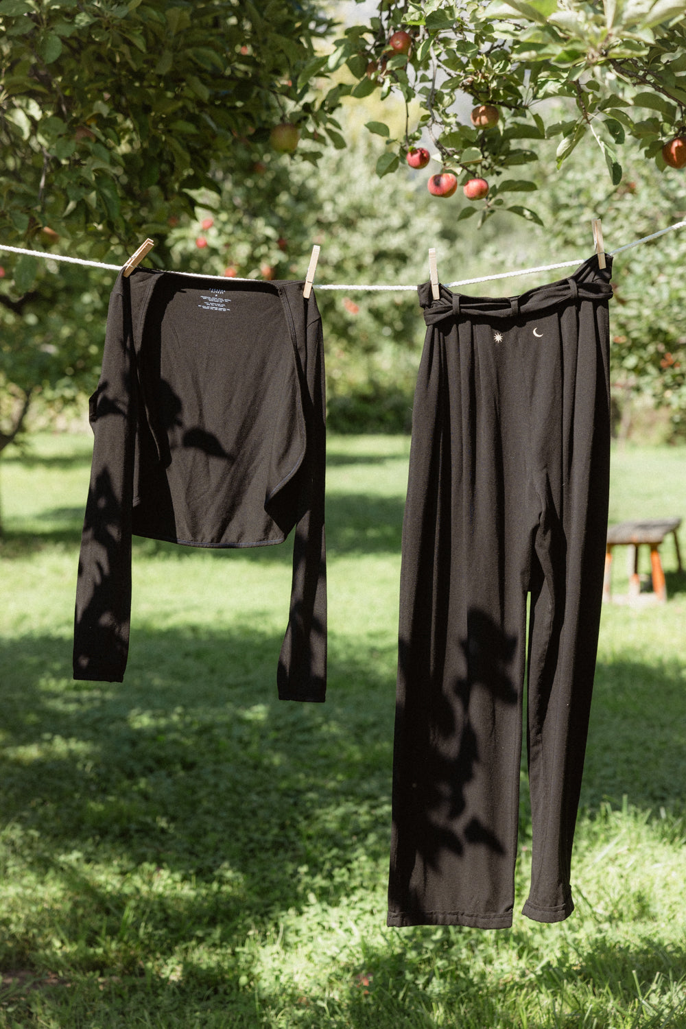 We use plant-based fabrics like TENCEL™ lyocell, ECOVERO™ viscose, and organic cotton, blended with Creora® bio-based spandex for gentle stretch. While the spandex still contains some petroleum, it’s partially derived from renewable sources—making it a better option than traditional synthetics. The result: soft, breathable, lower-impact clothing that feels as good as it is.