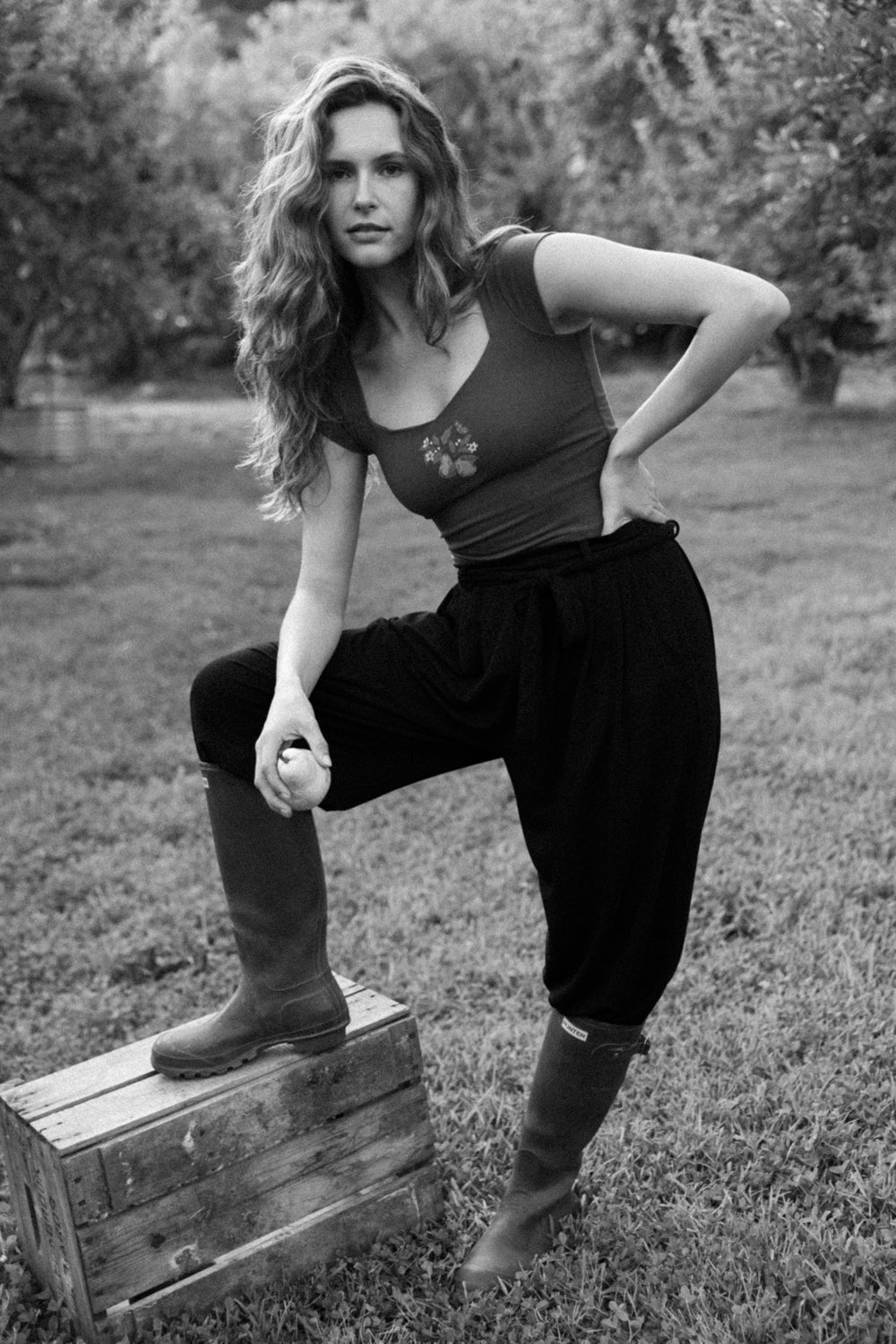 ✿ Charlie is wearing size S and is 5’8” with a 34” bust, 26.5” waist, and a 37” hip.