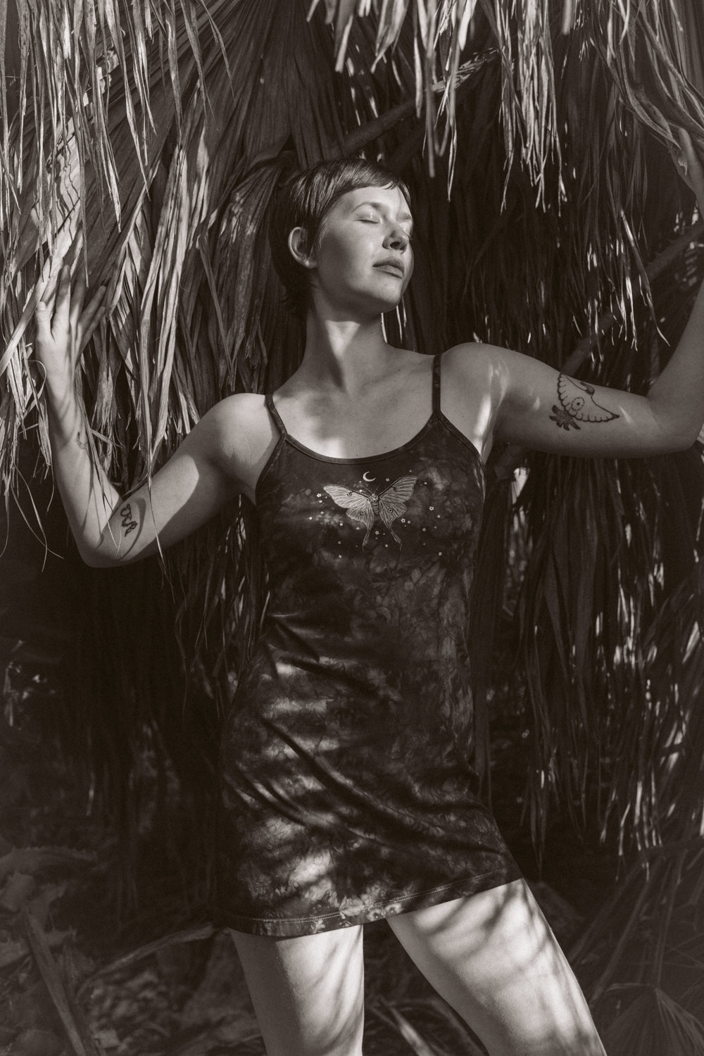 We knit our fabrics in Los Angeles, work with a GOTS-certified dye house, and print exclusively with water-based inks. Every design is created in collaboration with female artists, and all of our production partners are small, family-owned studios located within a 25-mile radius of downtown LA, bringing our vision to life with care and integrity.