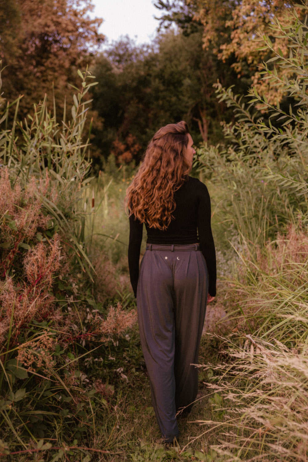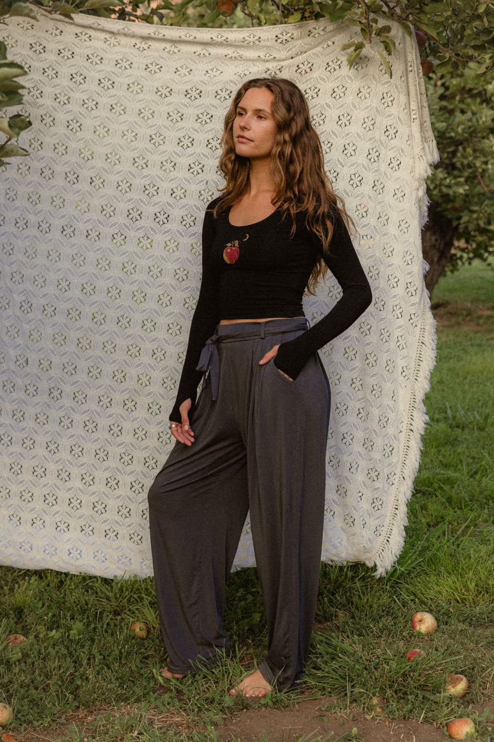 ✿ Loose, draping, slouchy, and pleated waist that can be worn high or low.