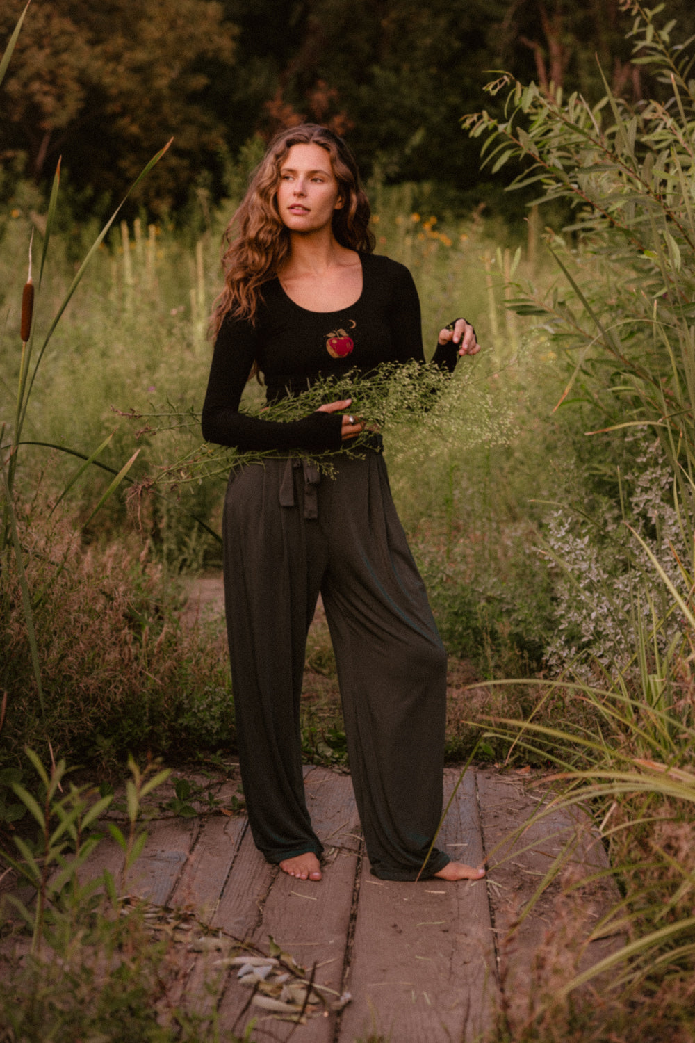 Every piece is made from premium, plant-based or naturally derived fibers selected for softness, breathability, and comfort. Many of our fabrics include TENCEL™ lyocell or other sustainable blends made in small batches. Each garment is dyed and finished in Los Angeles, giving it that signature Purusha feel that is buttery, lived in, and completely unique.