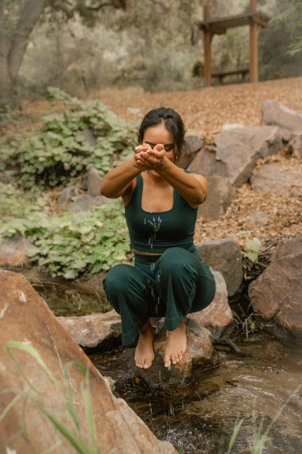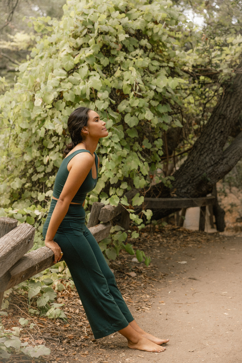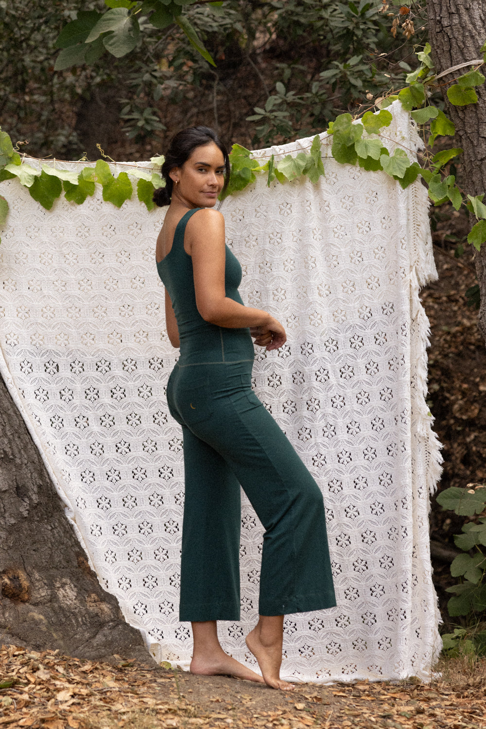 Every piece is made from premium, plant-based or naturally derived fibers selected for softness, breathability, and comfort. Many of our fabrics include TENCEL™ lyocell or other sustainable blends made in small batches. Each garment is dyed and finished in Los Angeles, giving it that signature Purusha feel that is buttery, lived in, and completely unique.