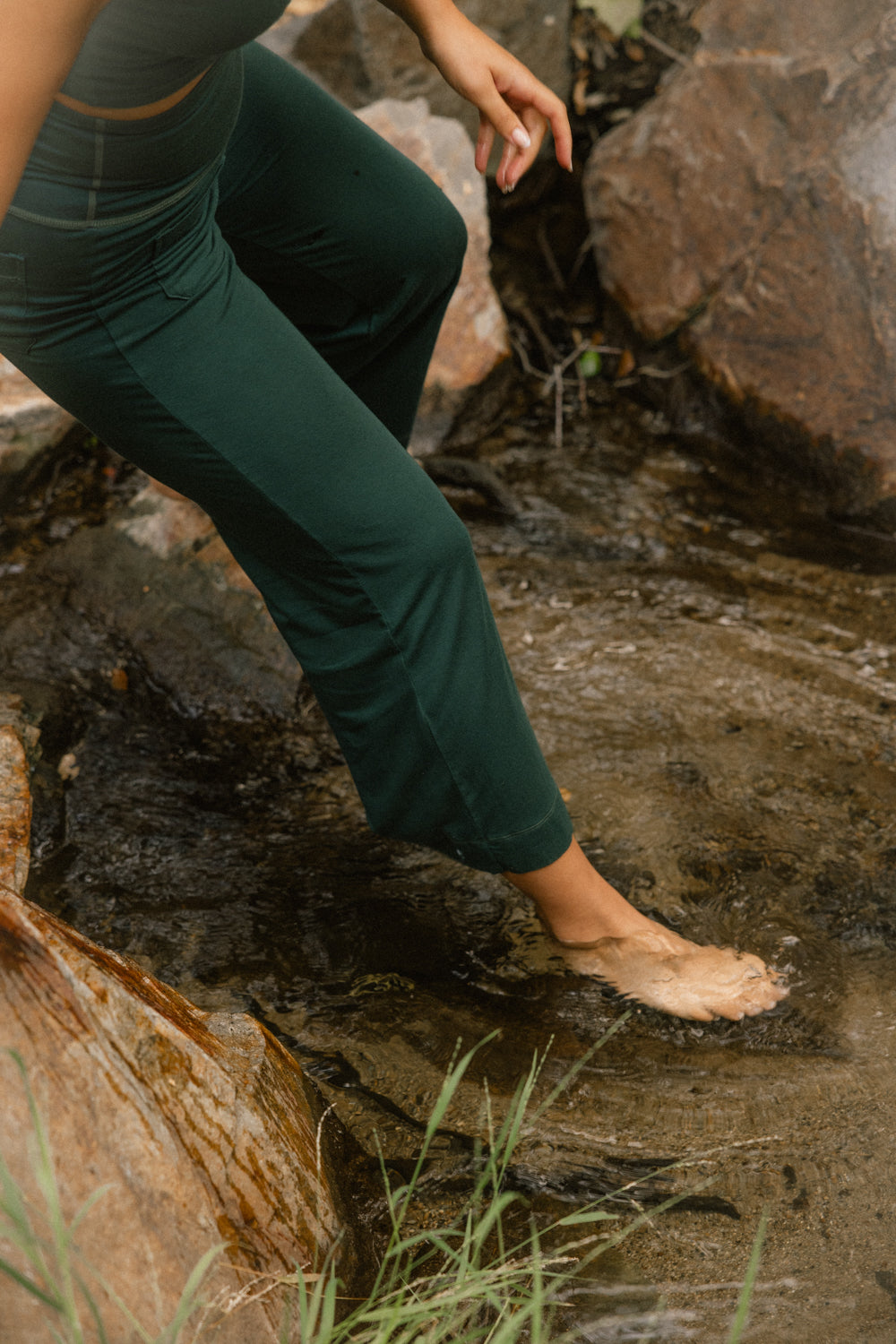 We use plant-based fabrics like TENCEL™ lyocell, ECOVERO™ viscose, and organic cotton, blended with Creora® bio-based spandex for gentle stretch. While the spandex still contains some petroleum, it’s partially derived from renewable sources—making it a better option than traditional synthetics. The result: soft, breathable, lower-impact clothing that feels as good as it is.