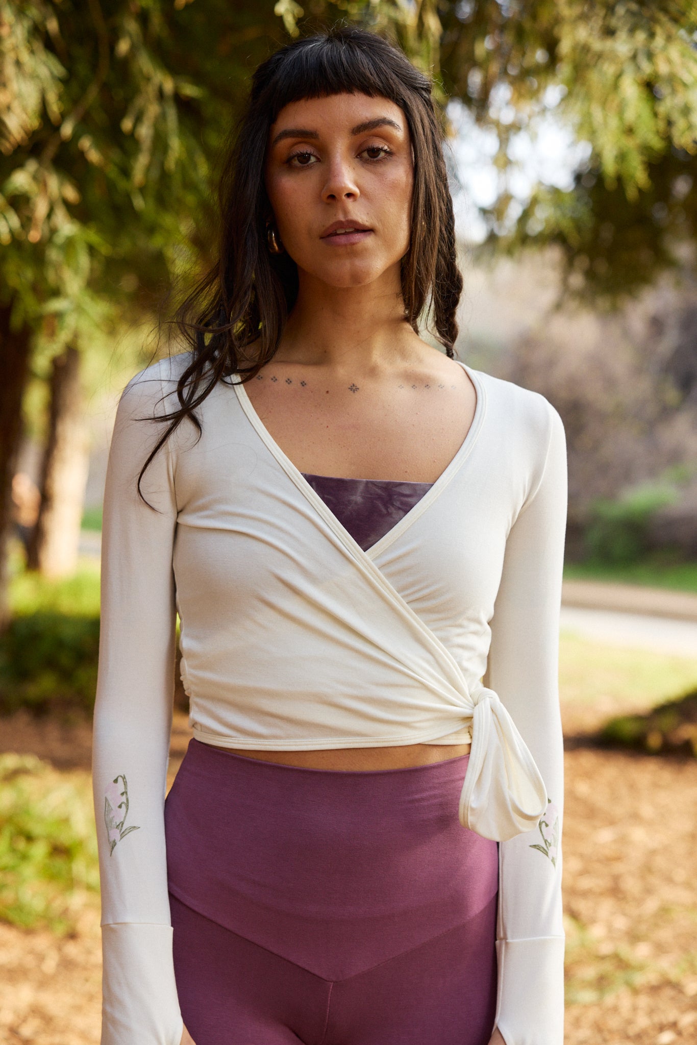 We use plant-based fabrics like TENCEL™ lyocell, ECOVERO™ viscose, and organic cotton, blended with Creora® bio-based spandex for gentle stretch. While the spandex still contains some petroleum, it’s partially derived from renewable sources—making it a better option than traditional synthetics. The result: soft, breathable, lower-impact clothing that feels as good as it is.